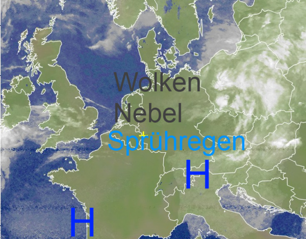 Auch wenn es auf dem Satellitenbild so wolkenfrei aussieht. Der Himmel über Mitteleuropa präsentiert sich bis auf wenige Aufheiterungen meistens grau in grau und trist. Dabei fällt gebietsweise auch leichter Regen und Sprühregen. Es handelt sich hierbei meist um eine tiefhängende Wolkendecke, die vom Satelliten nicht gut erfasst wird. Auch die kommenden Tage bieten wenig Hoffnung auf Sonnenlicht. Aufheiterungen werden eher selten auftreten. Wenigstens wird der Regen vorübergehend mal weniger.