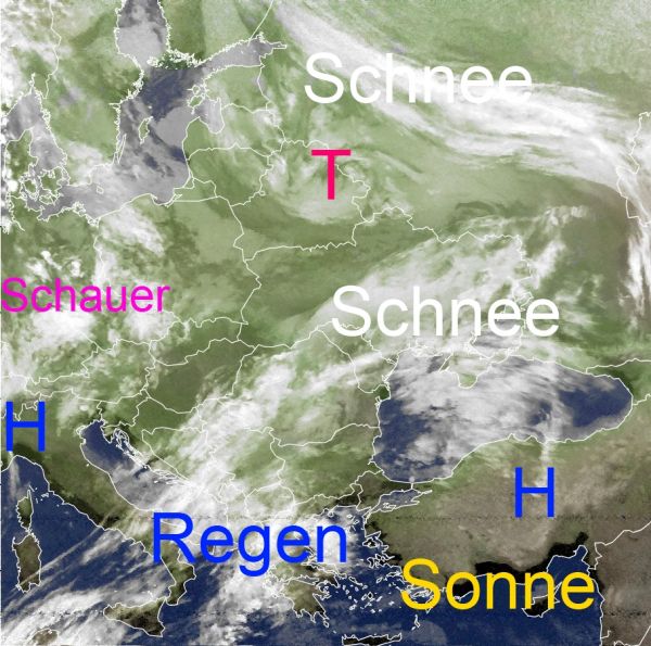 Nicht nur bei uns, sondern auch in weiten Teilen Osteuropas gestalte sich das Wetter ziemlich launisch mit Regen, Schnee und dazwischen auch etwas Sonnenschein.