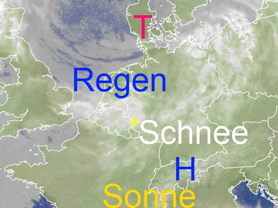 Eine Schlechtwetterzone zieht aktuell über Deutschland hinweg und bringt Regen und Schnee. Die Front hat mittlerweile Baden-Württemberg, sowie das nördliche und westliche Bayern erreicht. In der einströmenden milderen Luft, die den Nordwesten unseres Landes erreicht hat, stiegen die Temperaturen teilweise auf 6 bis 9 Grad. Vor allem in höheren Lagen ist es oft auch neblig-trübe.