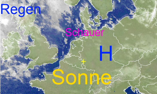 In der eingeströmten Polarluft hat sich ein kräftiges Hoch mit einem Luftdruck von über 1035 HPa entwickelt, das in großen Bereichen Mitteleuropas für einen freundlichen Tag sorgt. Hauptsächlich im Küstenbereich gingen zu Tagesbeginn aber noch örtliche Schauer nieder. Trotz reichlich Sonnenscheins bleiben die Temperaturen aber auch tagsüber eher verhalten.