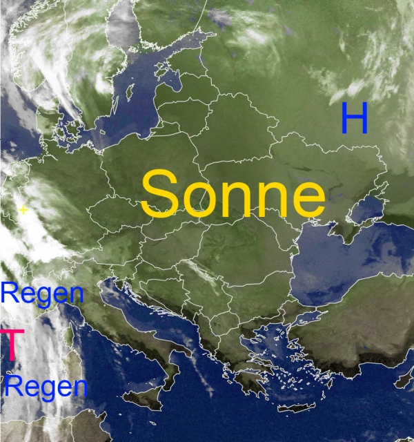 Dank des kräftigen und stabilen Hochdruckgebietes über Russland findet man über großen Bereichen Osteuropas kaum Wolken.