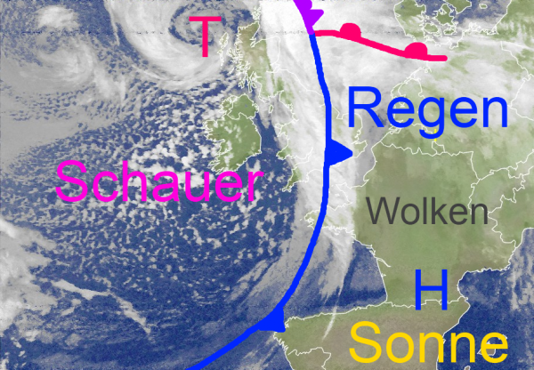 Dichte Schichtwolken ziehen über Deutschland hinweg und bringen Regen und Sprühregen. Im Tagesverlauf überquert uns die Kaltfront des Tiefs bei Schottland mit teils schauerartig verstärktem Regen und stürmischen Windböen. Am Wochenende setzt sich in Mitteleuropa das unbeständige, windige aber zunächst noch milde Spätherbstwetter fort.