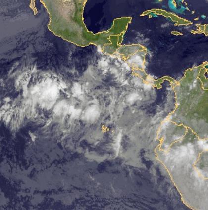 Die Zellen kräftiger Schauer- und Gewitter sind über dem mittleren Ostpazifik besonders gut zu erkennen. Diese entwickeln sich im Bereich der innertropischen Konvergenzzone. Neben den Galapagosinseln sind vor allem die Länder Mittelamerikas hiervon betroffen.