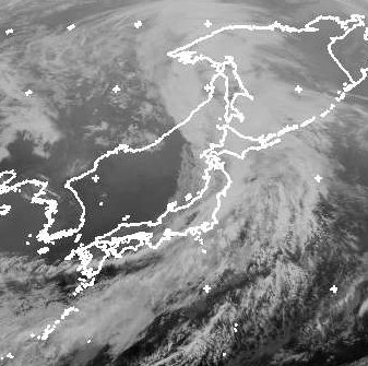 Der Ausläufer eines Tiefs über dem Ochotskischen Meer zieht von Westen über Japan hinweg und bringt dabei teils kräftigen Regen. Hinter dem Ausläufer erkennt man jedoch ein weiteres wolkenfreies Gebiet. (Bildquelle: NERC Satellite Receiving Station, Dundee University, Scotland, http://www.sat.dundee.ac.uk/)