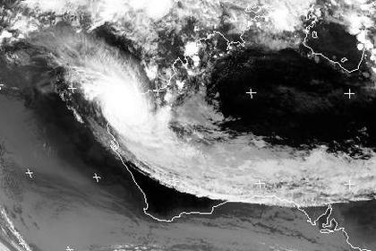 Zurzeit tobt Zyklon 'Glenda' im Westen des Kontinents. Dabei werden Böen von 240 km/h erreicht, an der Westküste regnet es ergiebig. Er zieht heute jedoch südwärts und damit landeinwärts. Er wird sich deutlich abschwächen.