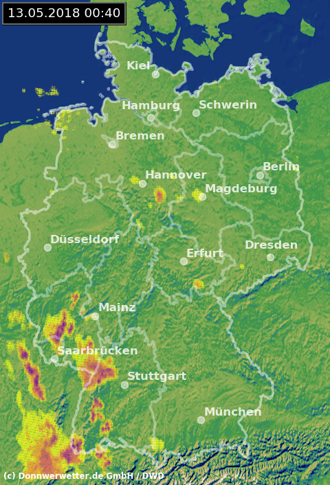 Radarbild von Sonntag, 13.05.2018 um 00.40 Uhr