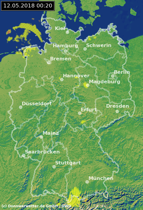 Radarbild von Samstag, 12.05.2018 um 00.20 Uhr