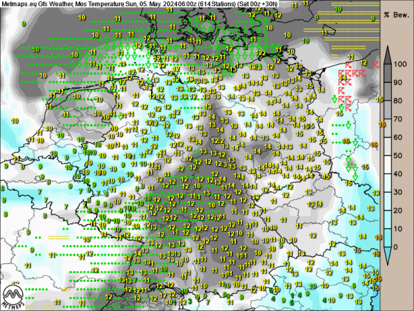 Bei meist trockenem Wetter geht es dann auch endlich wieder mit den Temperaturen bergauf, Spitzenwerte verbreitet um 20 bis 24 Grad sind ab dann zu erwarten.