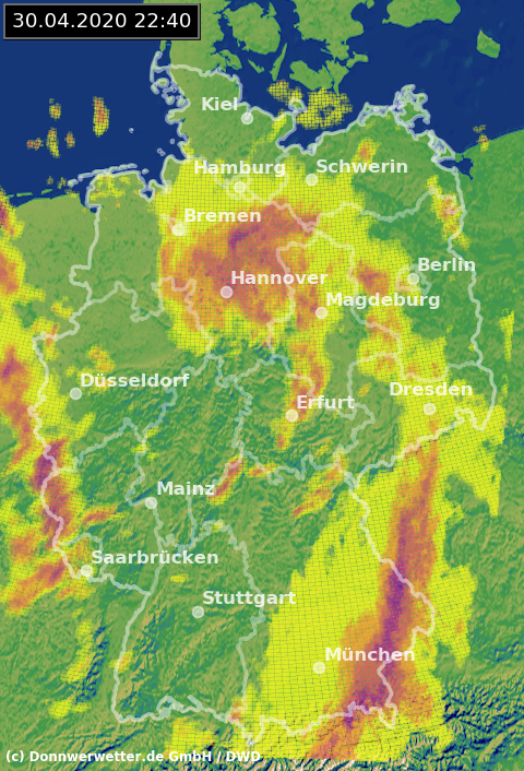 Radarbild von Donnerstag, 30.04.2020 um 22.40 Uhr