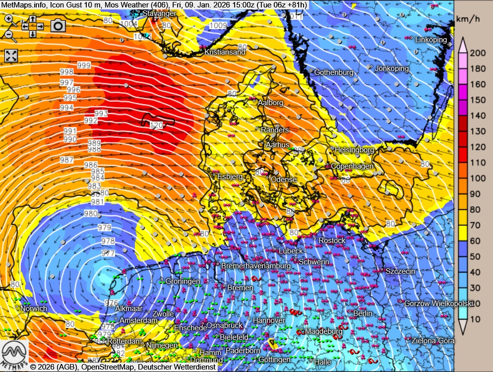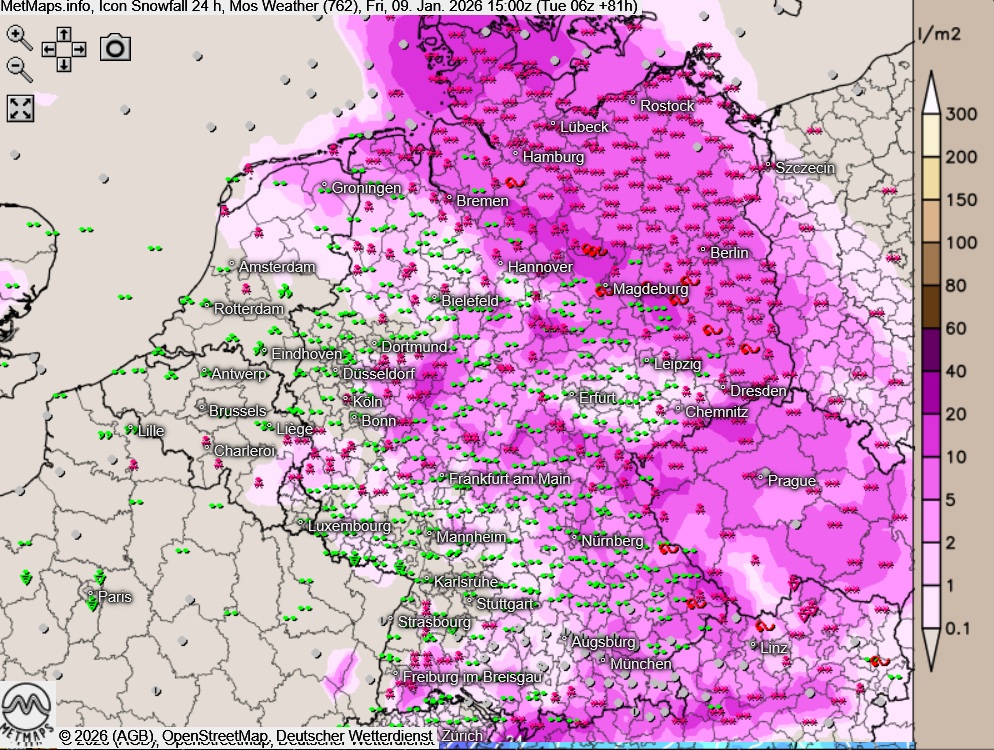 Zu erwarten ist dabei eine Kombination aus starkem Schneefall und Glätte, (schweren) Sturmböen und lokal teils erheblichen Verwehungen, die vor allem im Norden und Osten Deutschlands und in den Mittelgebirgen zu massiven Einschränkungen im Straßen-, Schienen- und Luftverkehr führen werden.