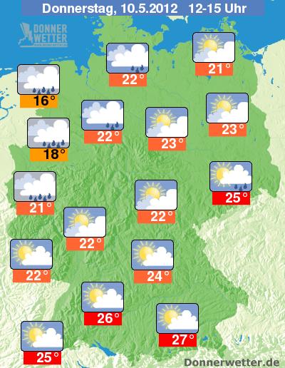 Im Nordwesten wird von der warmen Luft nicht ganz so viel zu spüren sein, hier bleiben die Temperaturen meistens an der 20 Grad-Marke.