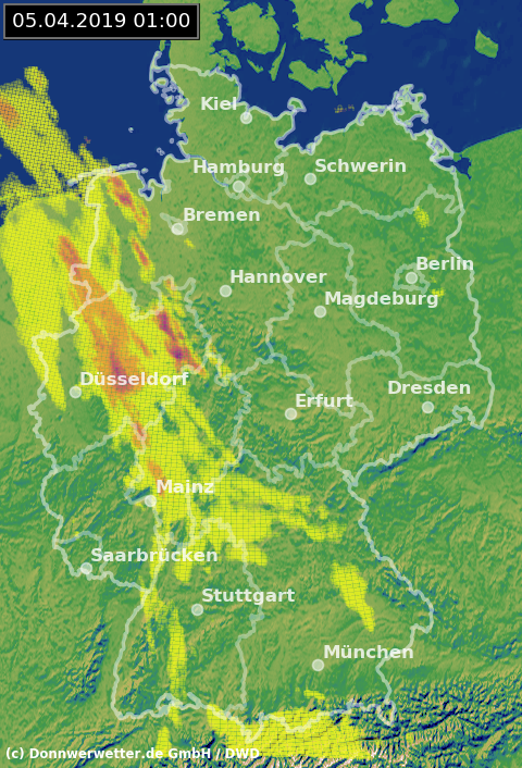 Radarbild von Freitag, 05.04.2019 um 01.00 Uhr