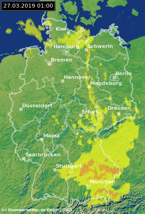 Radarbild von Mittwoch, 27.03.2019 um 01.00 Uhr