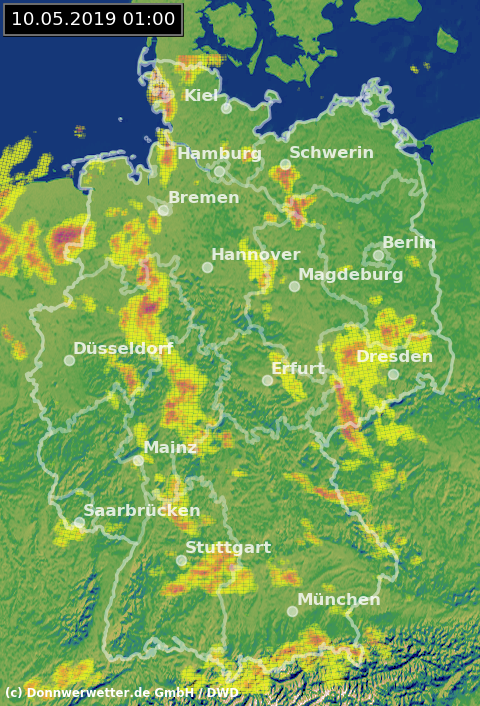Radarbild von Freitag, 10.05.2019 um 01.00 Uhr