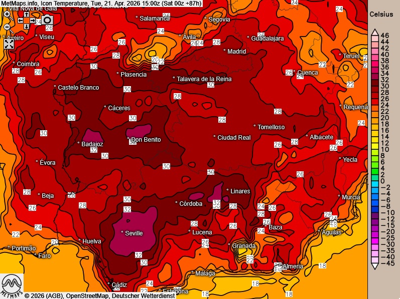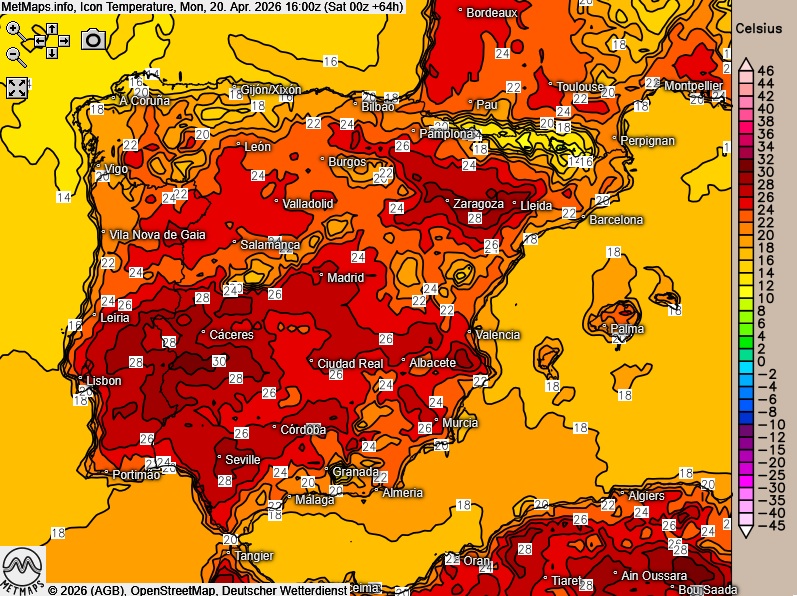 Auch zu Beginn der kommenden Woche bleibt es in Teilen Spaniens sehr heiß. Vor allem im Süden des Landes – etwa rund um die Metropolen Sevilla und Córdoba – sind am Dienstag sogar Spitzenwerte um 32 Grad möglich.