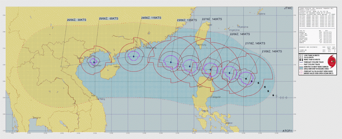 Der Super-Taifun Ragas bedroht aktuell Taiwan, die Philippinen, Hongkong und später auch Vietnam. Mit Windgeschwindigkeiten über 200 km/h ist unter anderem mit staken Auswirkungen im Schiffsverkehr zu rechnen.