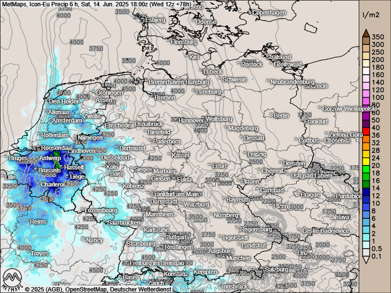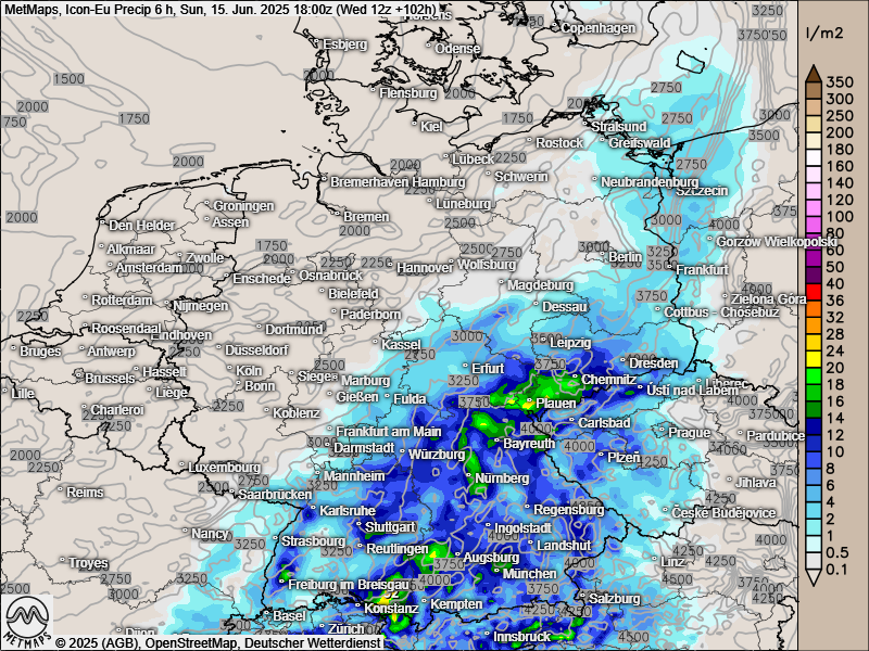 Sechs-Stunden-Niederschlag bis Sonntag, 18:00 Uhr (ICON)