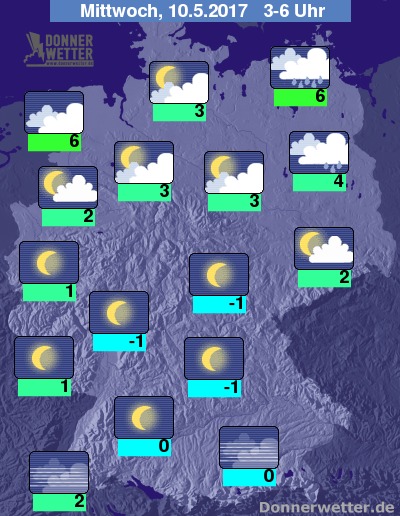 Unsere beiden Karten zeigen die zu erwartenden Tiefsttemperaturen in der Nacht auf Dienstag und Mittwoch.