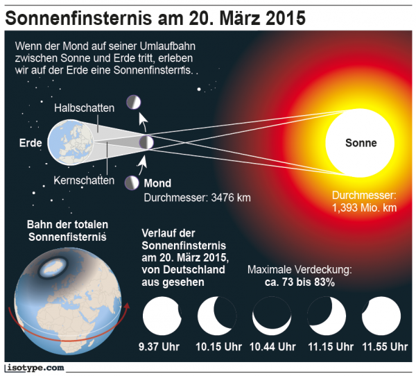 Am 20. März 2015 ist es wieder soweit: Pünktlich zum kalendarischen Frühlingsbeginn findet auf der Nordhalbkugel die nächste totale Sonnenfinsternis statt.